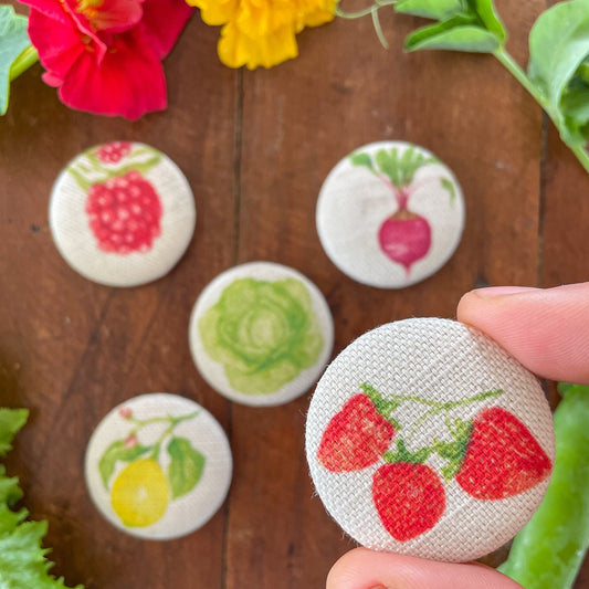 Gardener's Collection Vegetable Fabric Button Magnet Set
