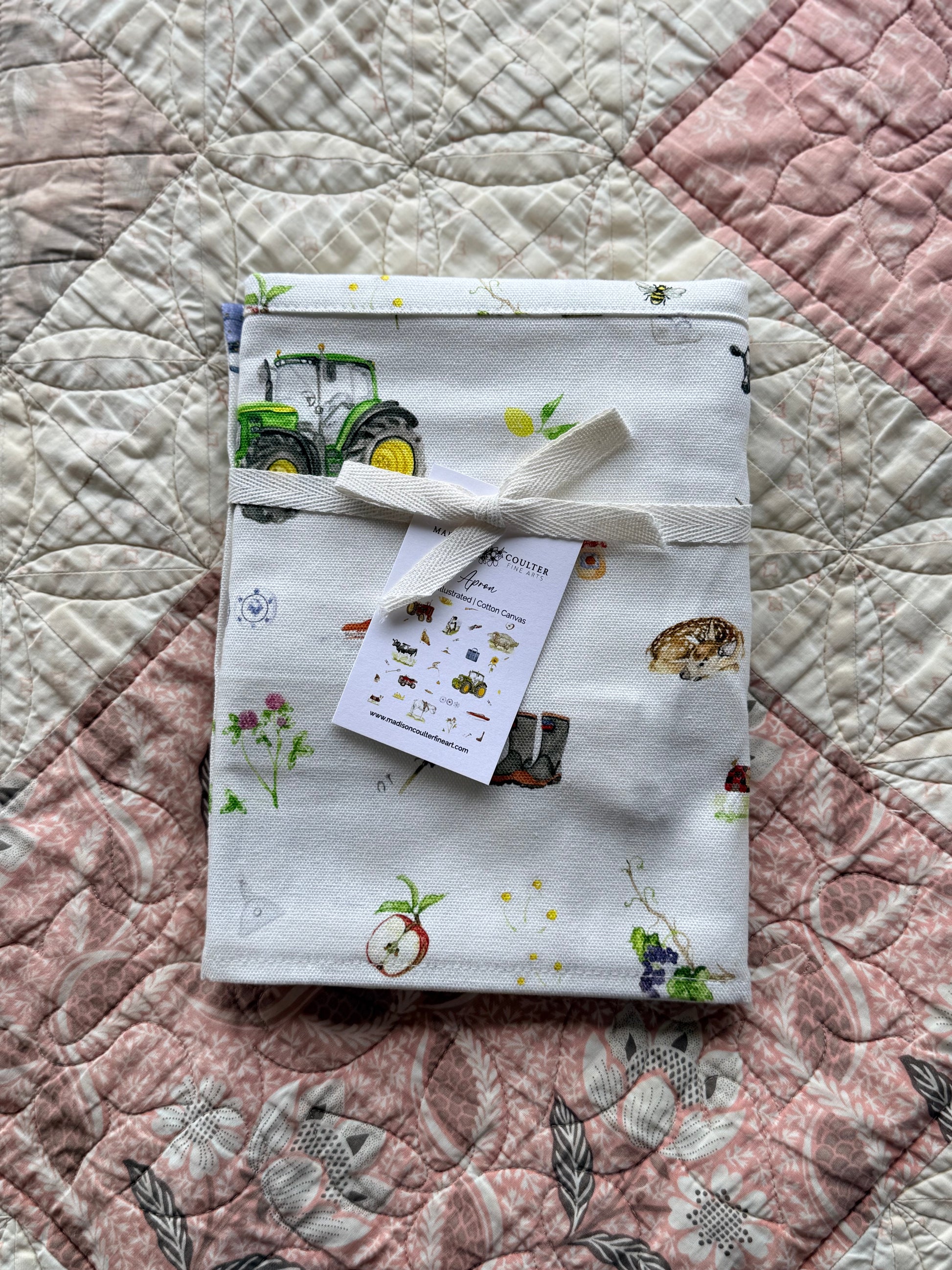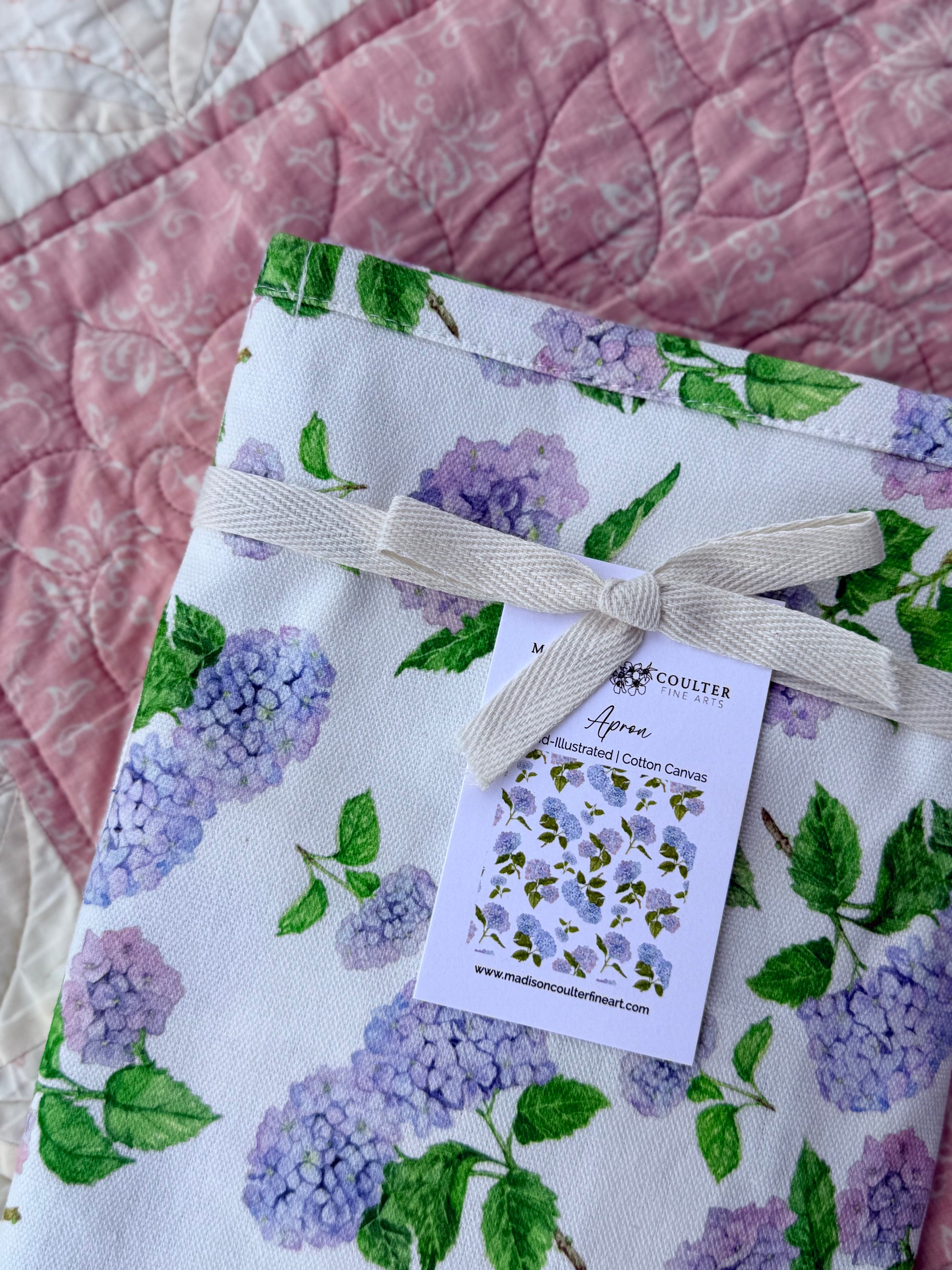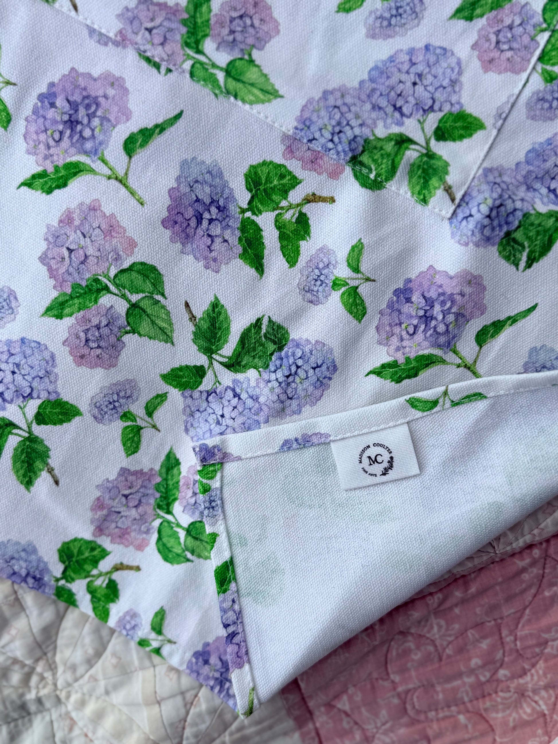 A lovely way to bring a little country into your kitchen. Crafted from durable, easy-care cotton canvas and printed with Madison’s original farm and hydrangea artwork, each piece is designed to be both functional and timeless.