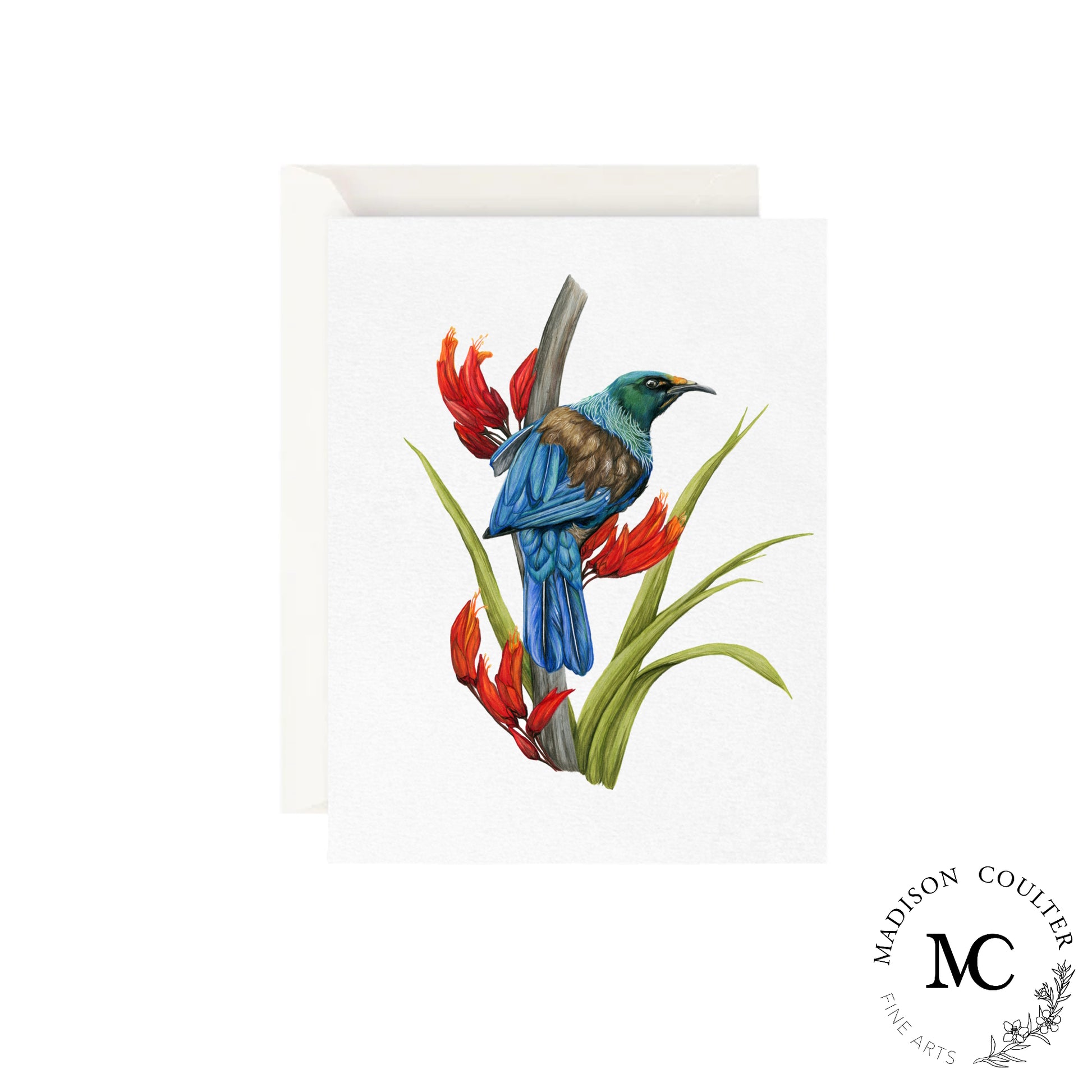 The Tui are definitly the boisterous songstresses of the forest and you often hear their melodies long before you see them. They look black from a distance, but in good light tui have a blue, green and bronze iridescent sheen, and distinctive white throat tufts that I have aspired to do justice to through my art.