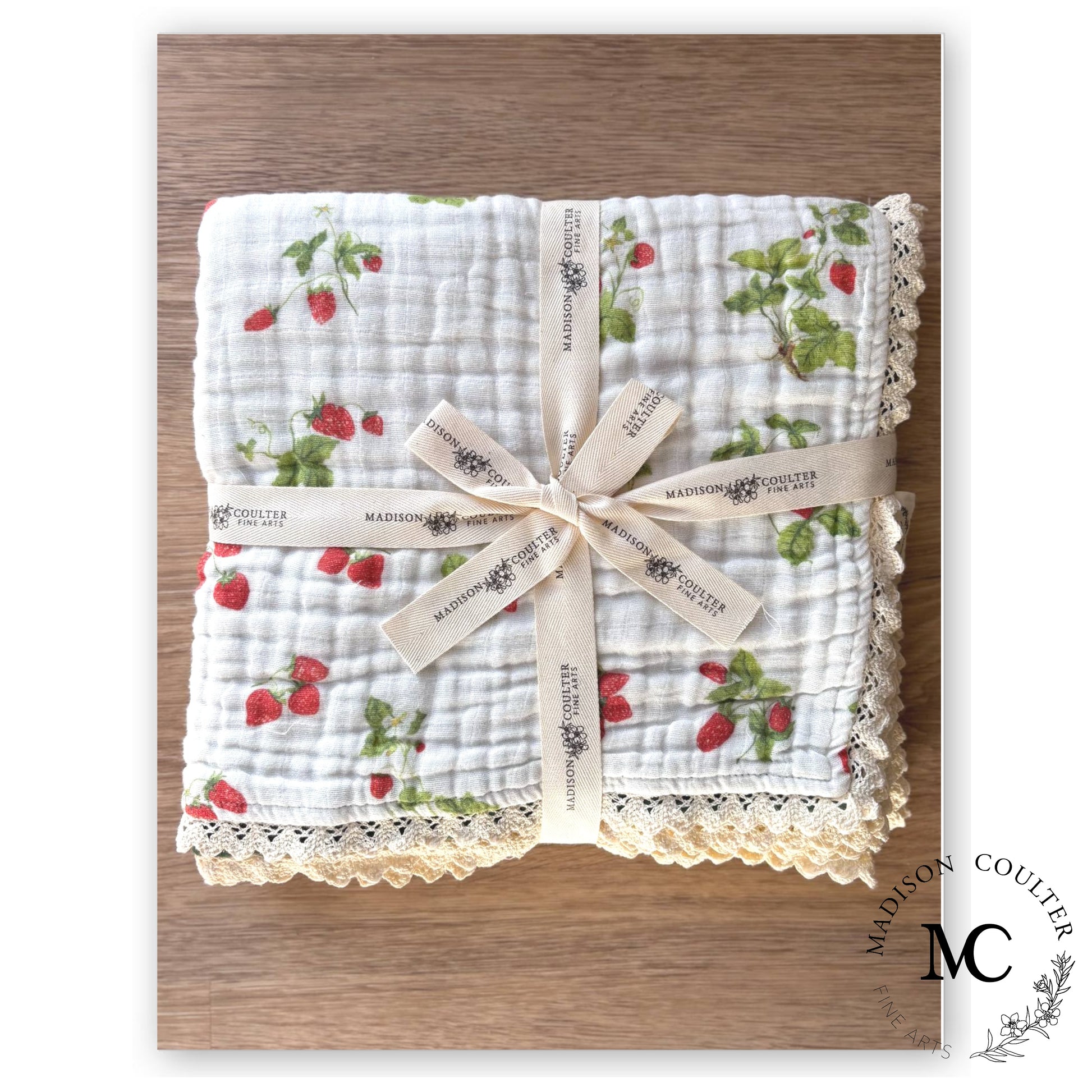 Soft, breathable and beautifully unique, our 6-layer organic cotton muslin quilts are designed to wrap your little one in comfort and charm. Whether it’s for nap time, tummy time or cozy cuddles on the couch, each quilt showcases Madison’s original hand-painted artwork, turning an everyday essential into a piece of art to treasure.