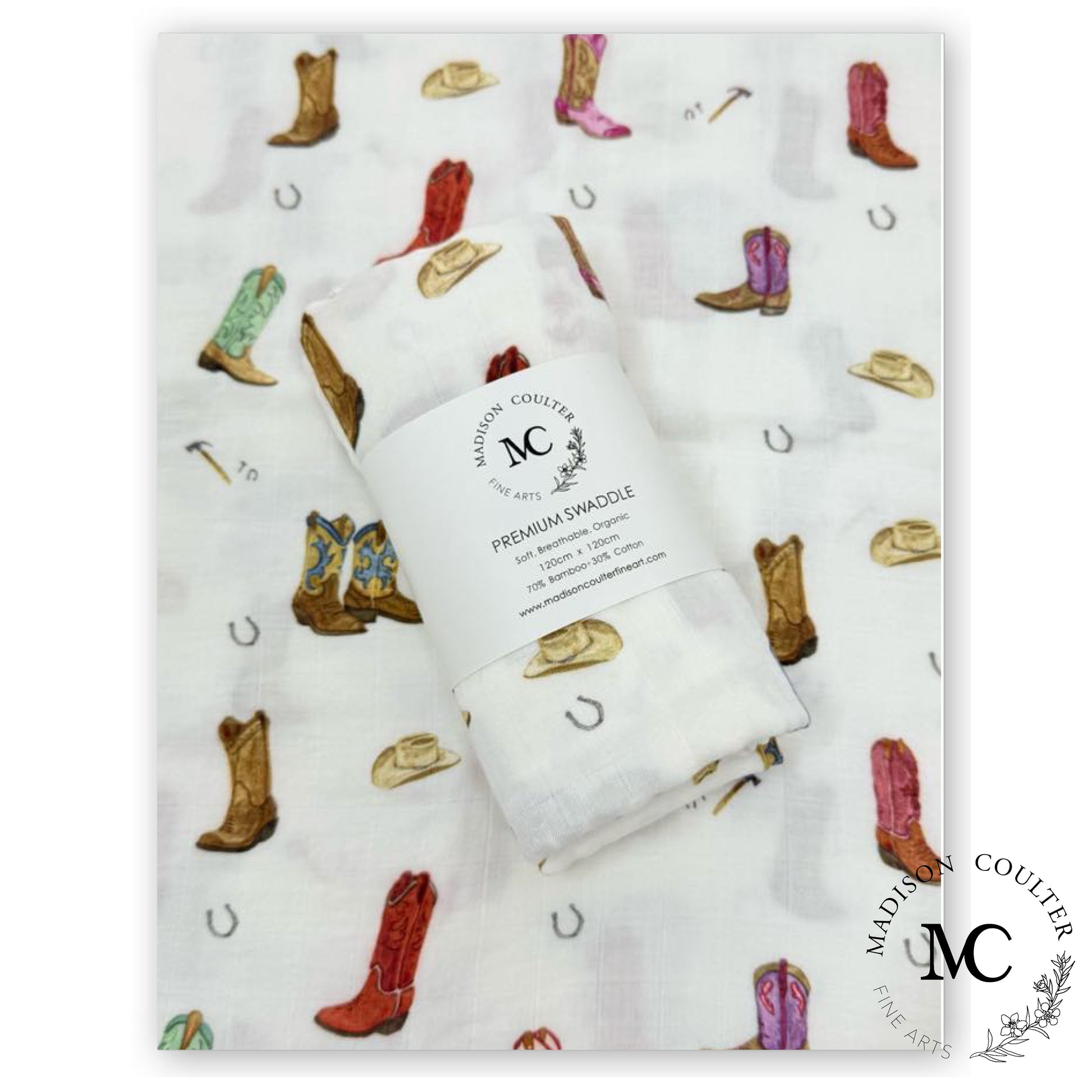 Our bamboo and cotton muslin swaddles are designed to wrap your little one in pure comfort. Light, airy, and wonderfully soft against delicate skin, each swaddle is adorned with Madison’s hand-illustrated artwork, bringing a hint of timeless charm to every cuddle. Made from a blend of organic cotton and bamboo, they’re perfect for swaddling, nursing, or snuggling, and make a beautiful gift for new arrivals and expecting parents alike.