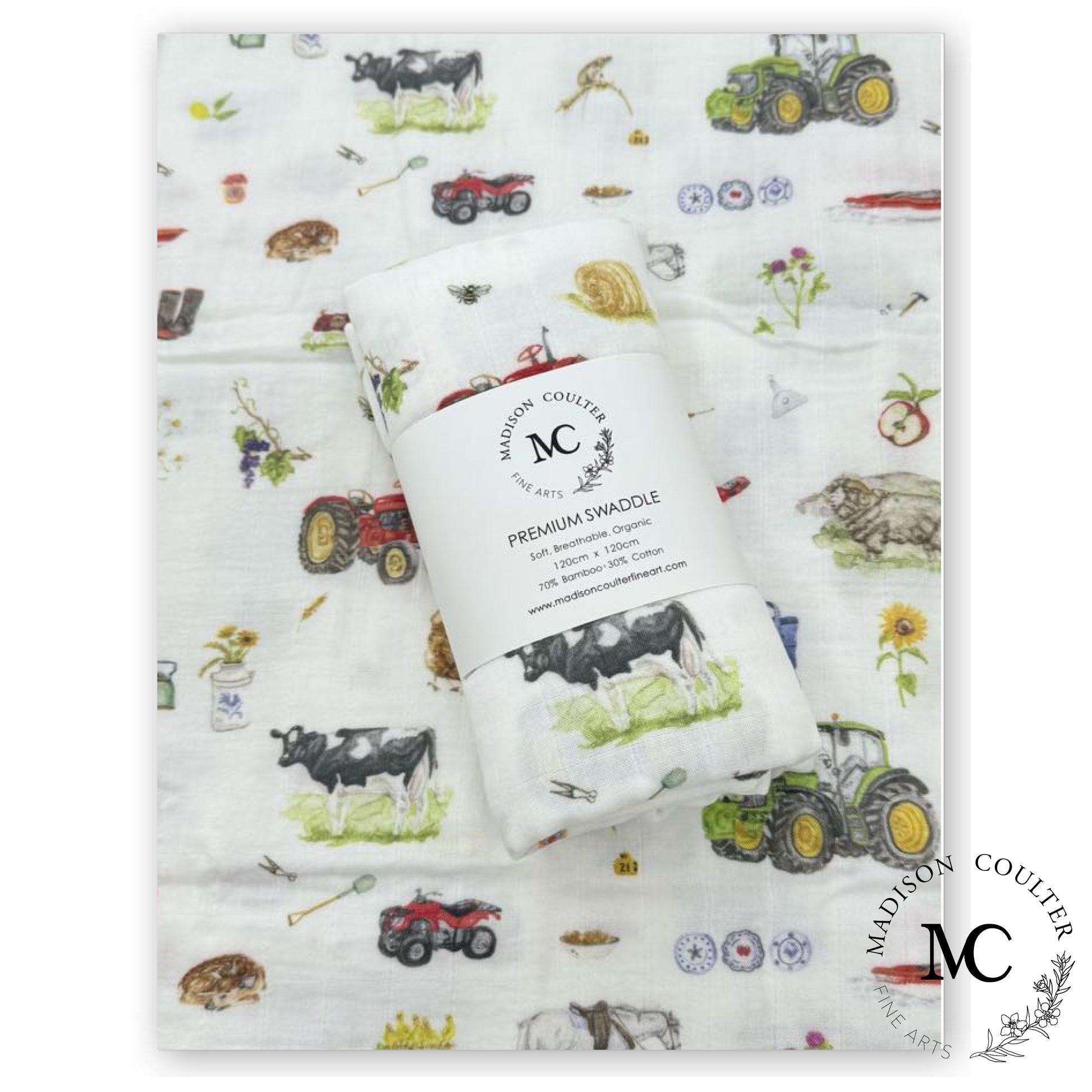 Our bamboo and cotton muslin swaddles are designed to wrap your little one in pure comfort. Light, airy, and wonderfully soft against delicate skin, each swaddle is adorned with Madison’s hand-illustrated artwork, bringing a hint of timeless charm to every cuddle. Made from a blend of organic cotton and bamboo, they’re perfect for swaddling, nursing, or snuggling, and make a beautiful gift for new arrivals and expecting parents alike.