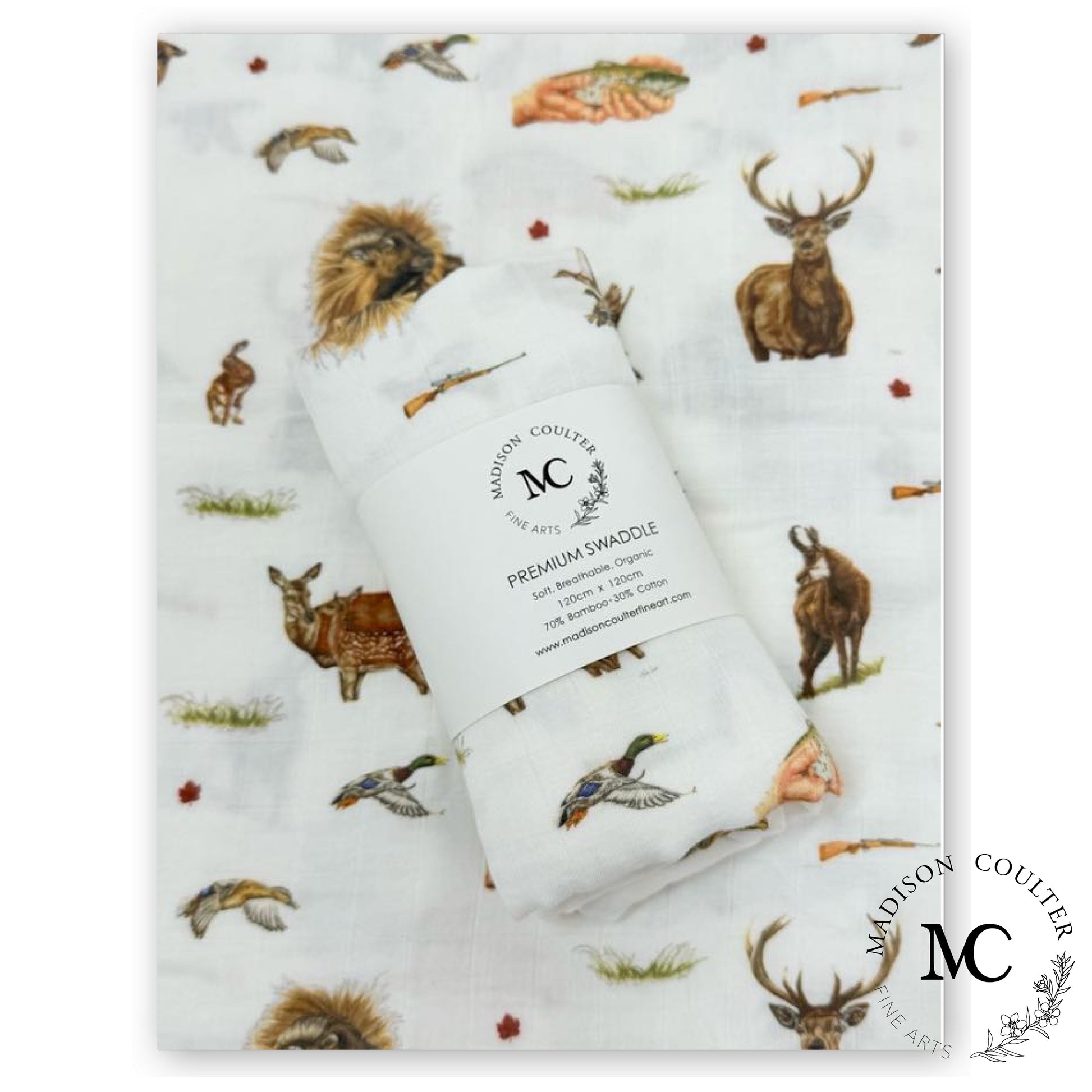 Our bamboo and cotton muslin swaddles are designed to wrap your little one in pure comfort. Light, airy, and wonderfully soft against delicate skin, each swaddle is adorned with Madison’s hand-illustrated artwork, bringing a hint of timeless charm to every cuddle. Made from a blend of organic cotton and bamboo, they’re perfect for swaddling, nursing, or snuggling, and make a beautiful gift for new arrivals and expecting parents alike.