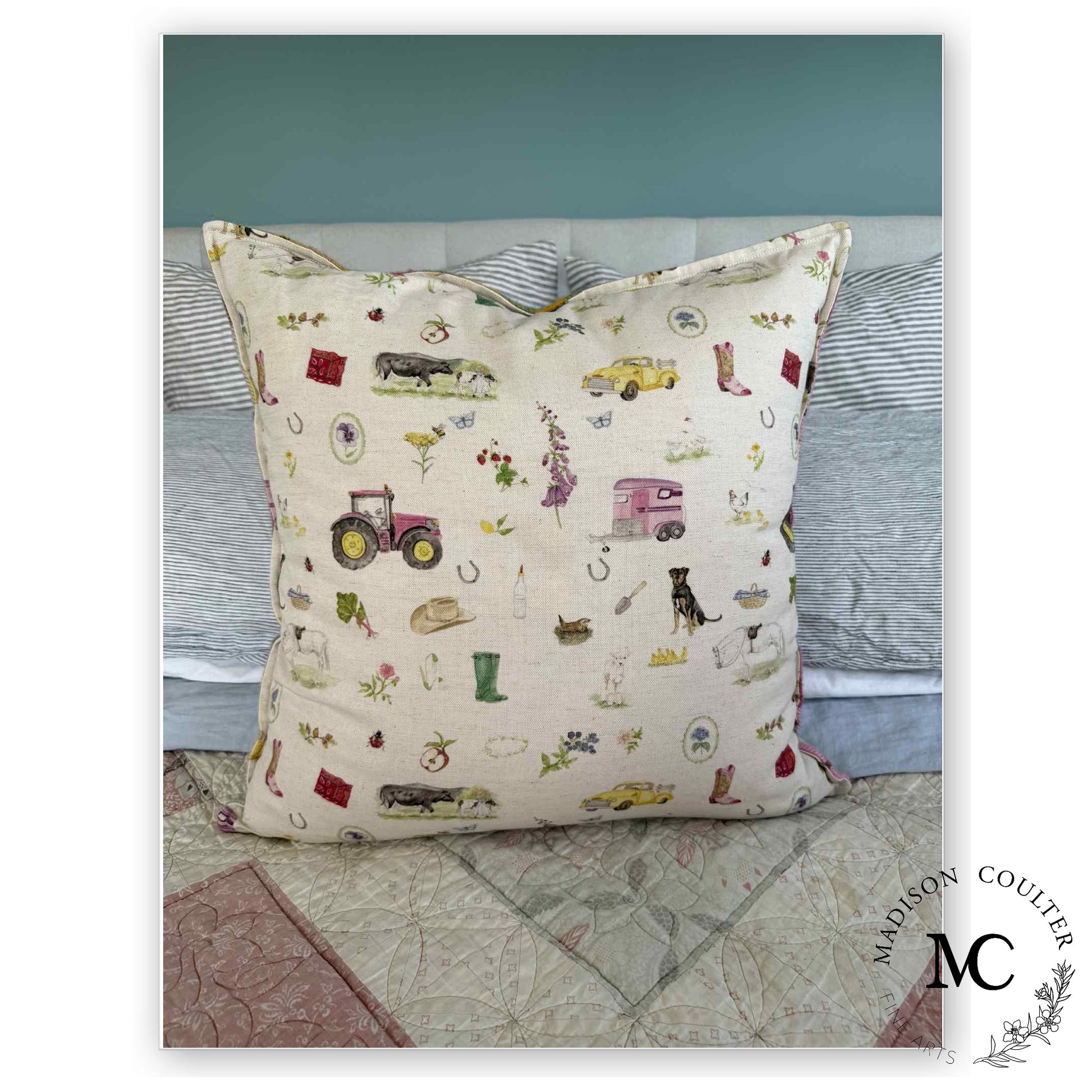 Immerse yourself in the heart of rural New Zealand with this 55cm x 55cm cushion, featuring Madison Coulter’s Farm Girl Life pattern—a charming design that celebrates the strength, spirit, and beauty of farm life through the eyes of a girl who knows the land. The reverse side boasts a luxurious 100% New Zealand Merino wool blanket fabric from Exquisite Wool Traders, a family-owned business renowned for their commitment to premium quality and craftsmanship.