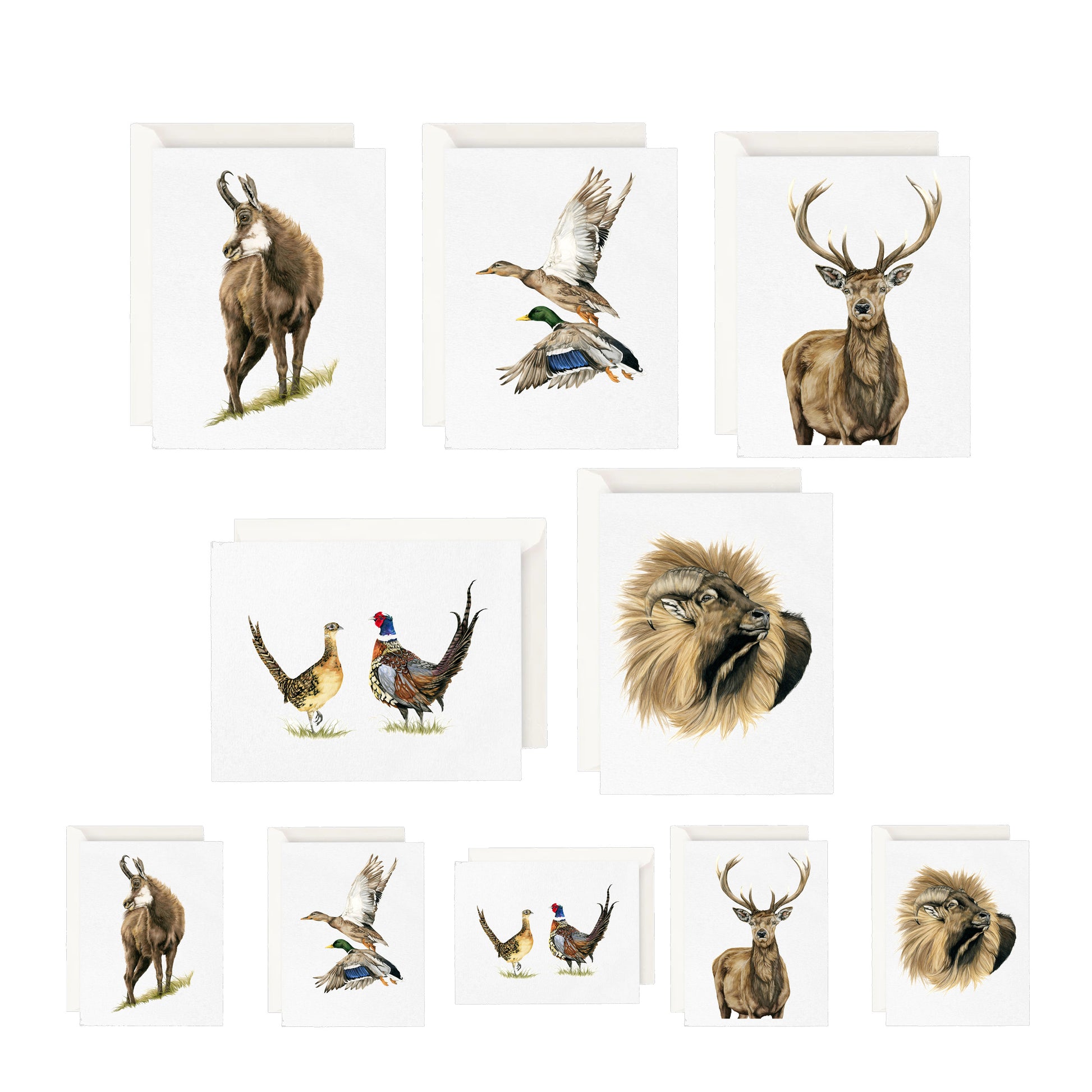 Get organized in style with our charming wooden storage box, free when you purchase this special greeting card set. Inside, you'll find 15 beautifully designed cards—5 birds, 5 hunting scenes, and 5 flowers—in both A6 and A7 sizes.