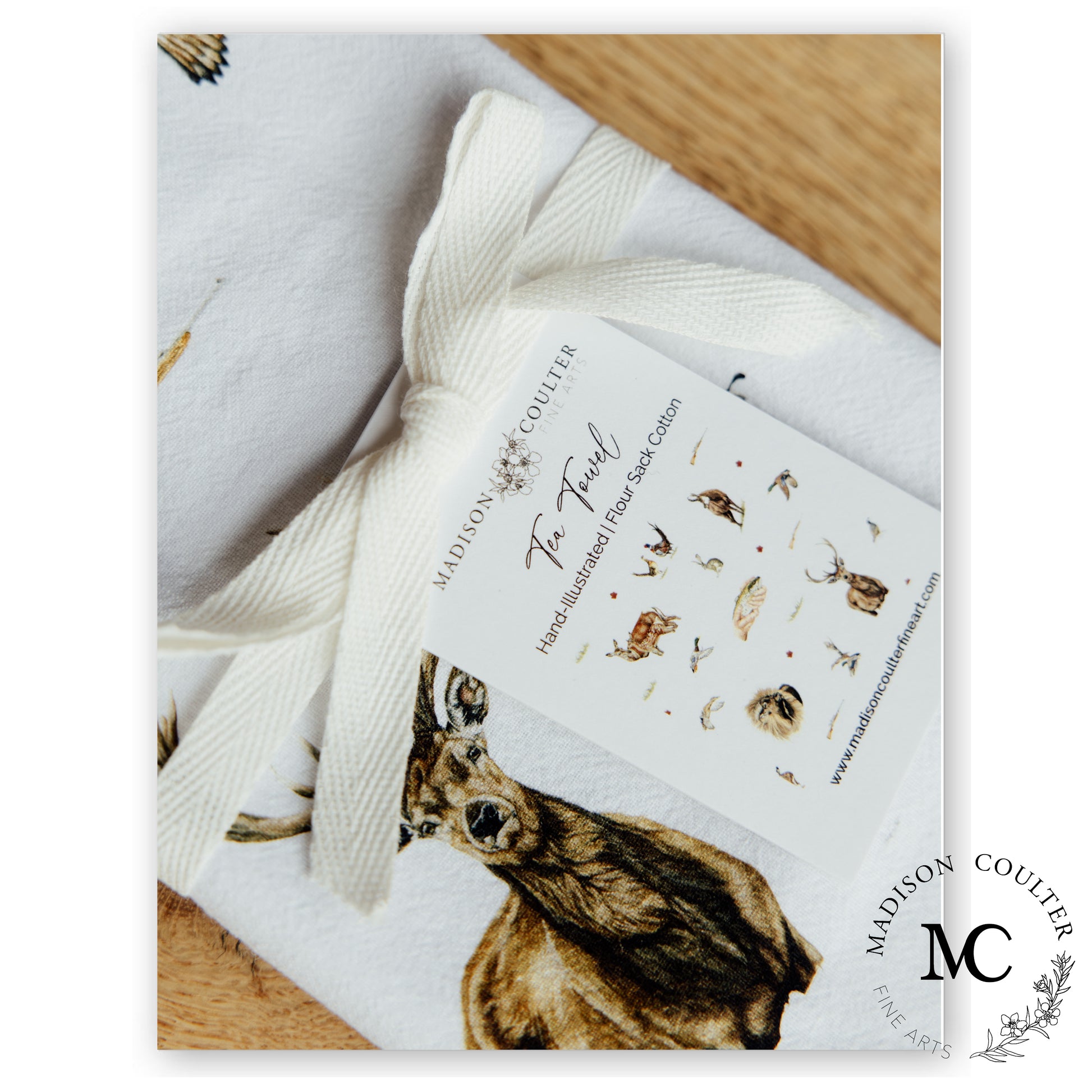 Featuring Madison’s hand- illustrated Hunter’s Collection, these tea towels are made from