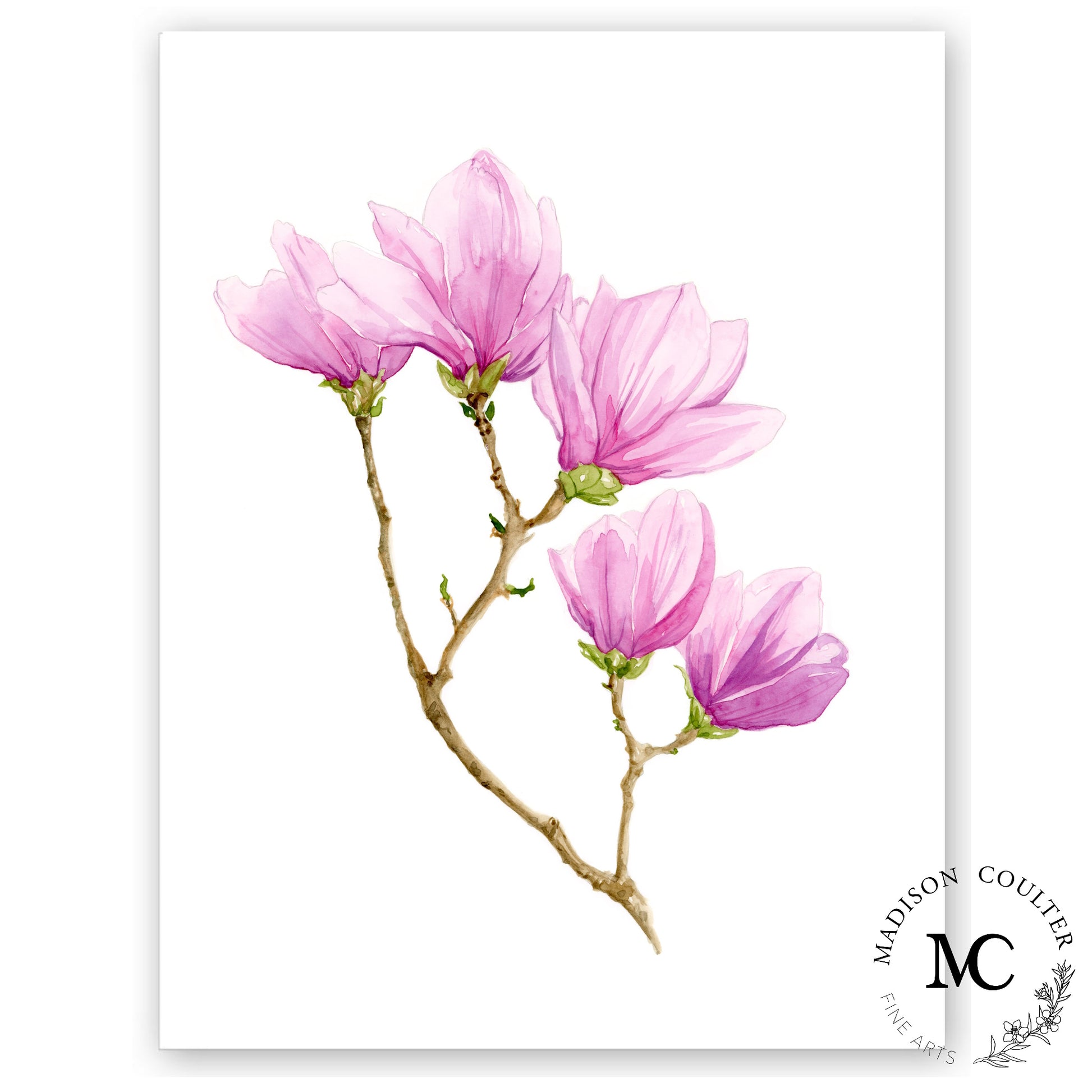 Discover the Pink Magnolia Flower by Madison Coulter. This piece highlights the natural beauty and vibrant colors of the magnolia flower. Madison's attention to detail and use of color make this floral painting a striking addition to any space.