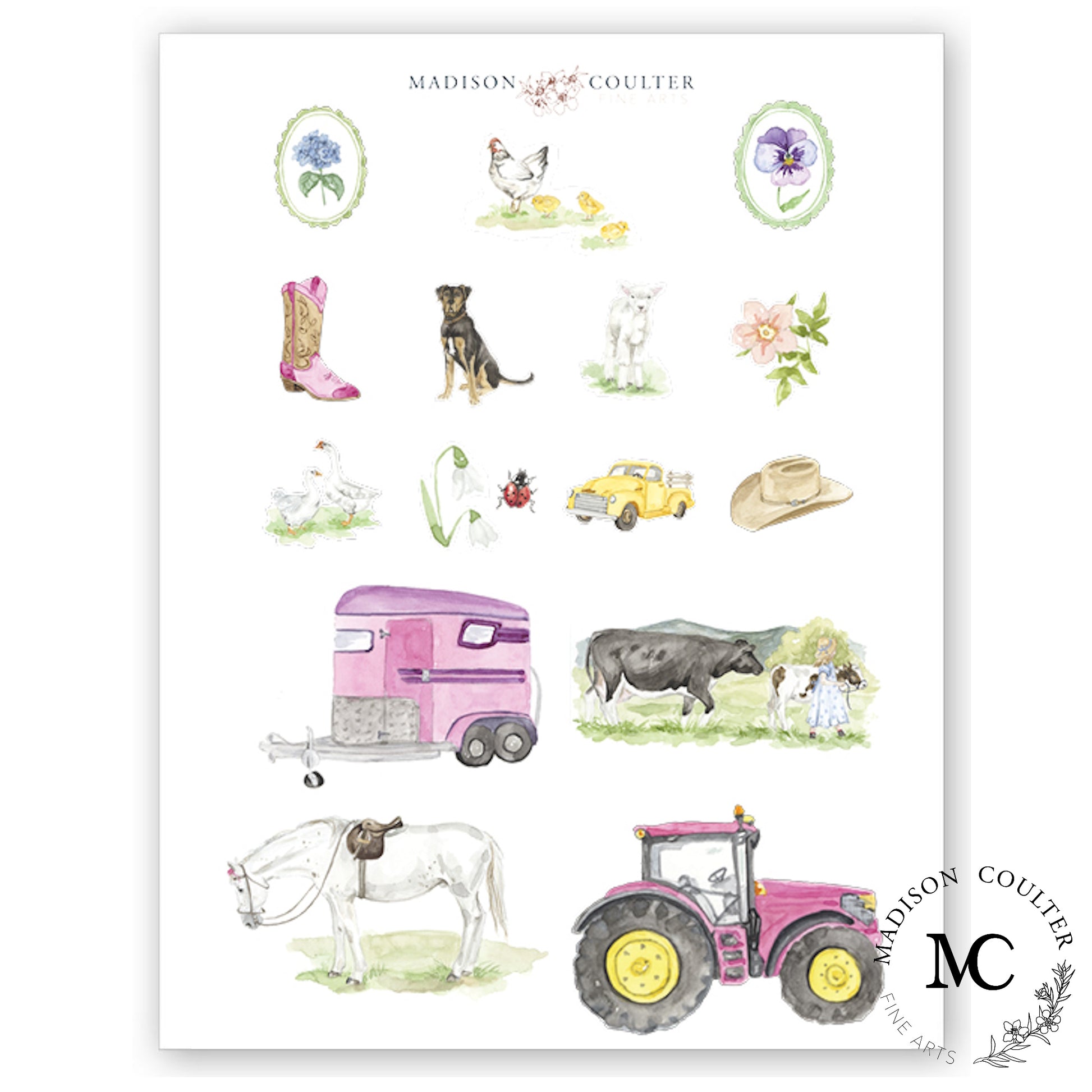 Perfect for popping in with a gift or as a special treat, these stickers are a celebration of the world of Madison Coulter Fine Art and are sure to bring a smile to people of all ages.