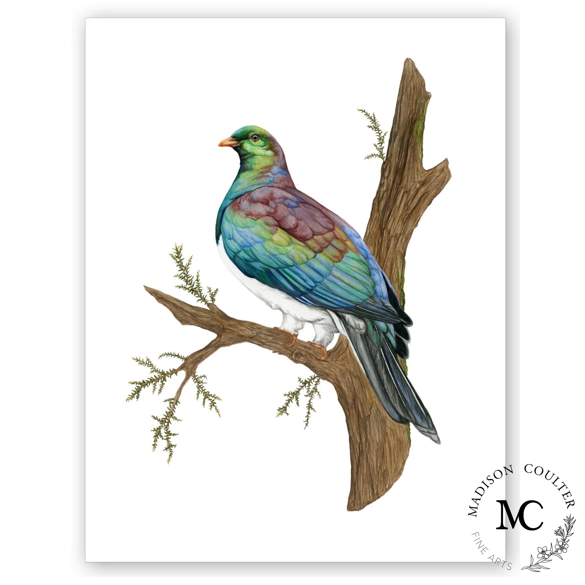 The distinctive beat of the wings of a NZ Wood Pigeon as they fly over to their next feast of fruit is a daily chorus at our place and I couldn't help but capture an image of these beautiful native birds as a part of my 'birds of Woodbury' collection.